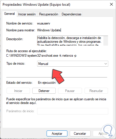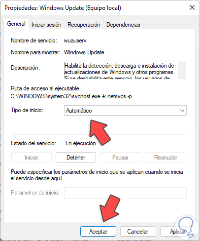 En "Tipo de inicio" establecemos "Automático". Aplicamos los cambios: