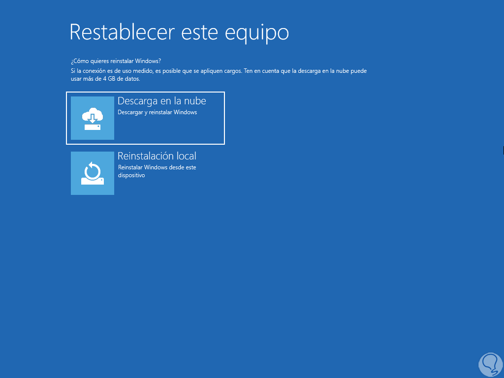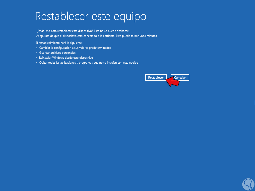 Ahora veremos lo siguiente. Damos clic en "Restablecer" para iniciar el proceso: