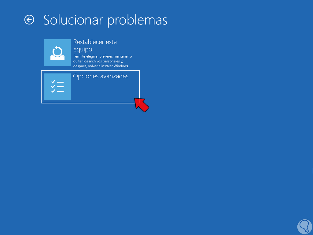 En el Inicio avanzado ve a “Solucionar problemas”: