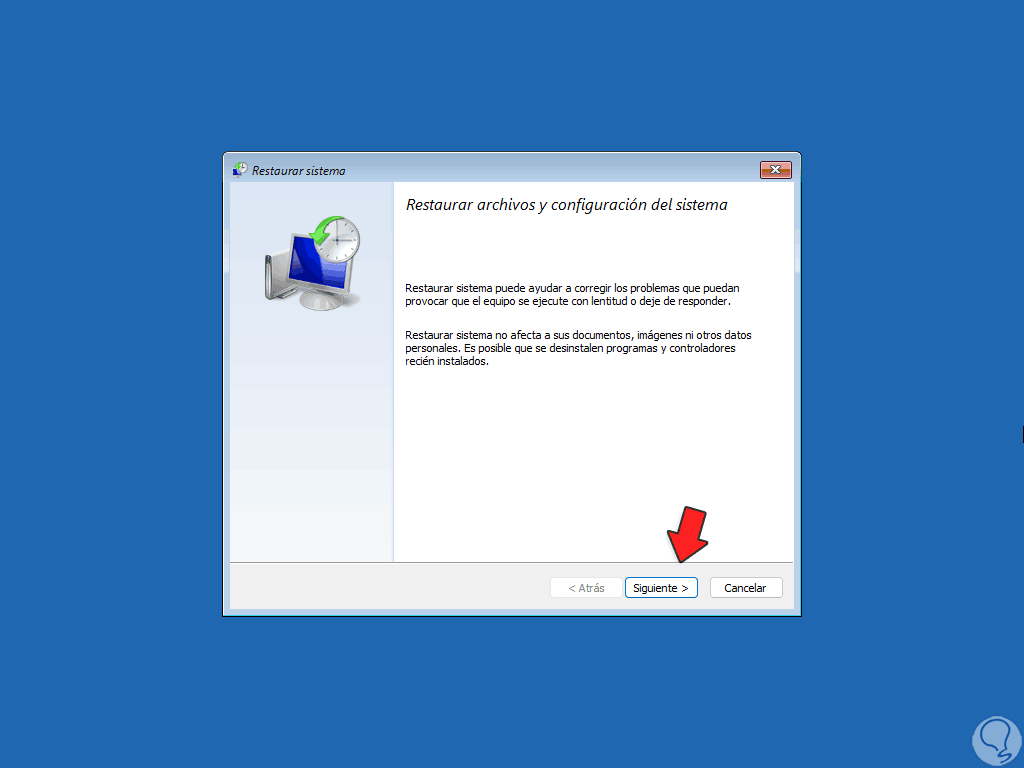 para seleccionar el punto de restauración deseado. Damos clic en Siguiente para ver un resumen de este