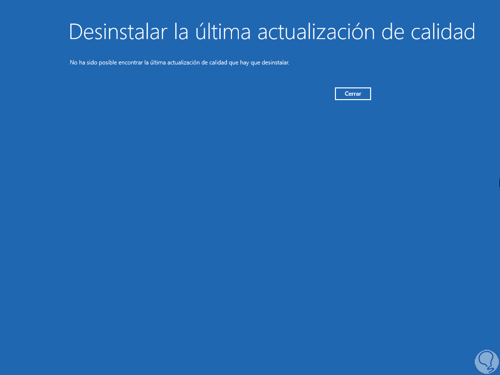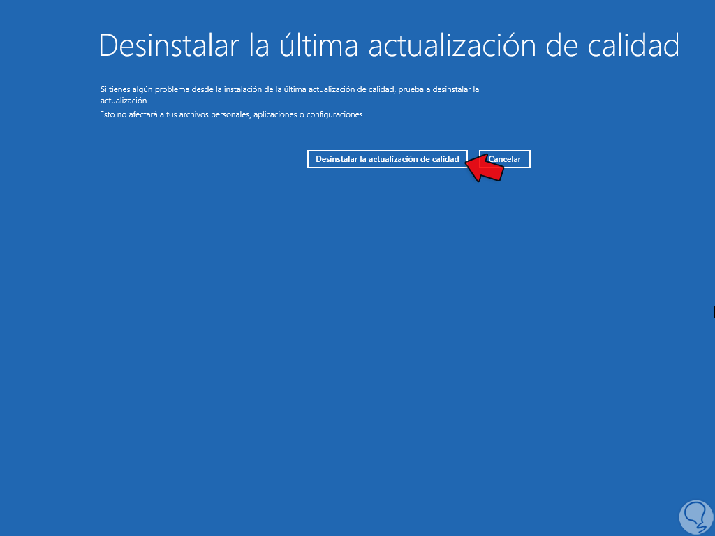 Veremos lo siguiente: Damos clic en “Desinstalar la actualización de calidad” para completar el proceso: