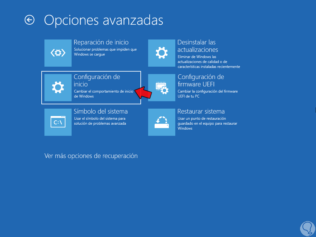 y serán desplegadas, después del reinicio, las siguientes opciones: