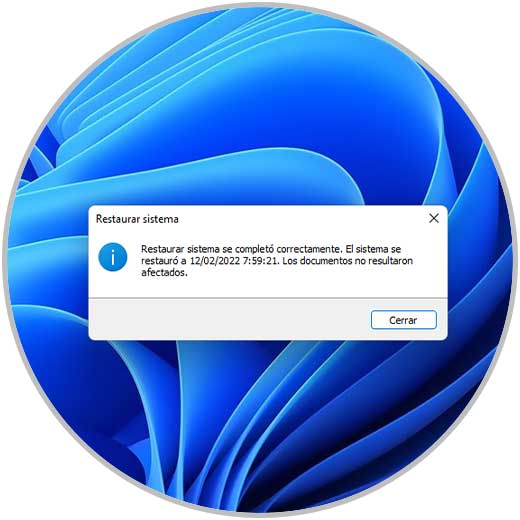 Iniciamos sesión con el entorno de trabajo normal en Windows 11 y con la restauración del sistema correcta: