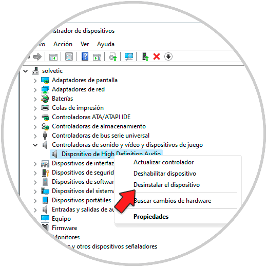 Finalmente, en caso de que ninguna de las soluciones anteriores nos de una corrección del volumen bajo, podemos desinstalar el controlador y luego, después de reiniciar el sistema, automáticamente se instalará el nuevo controlador, no tenemos que hacer nada manualmente.