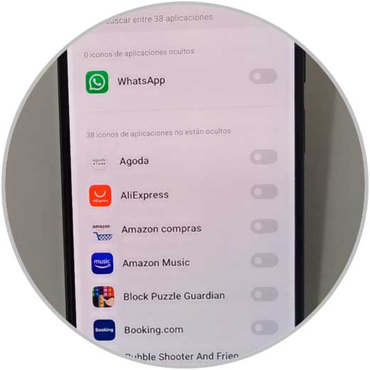 Ahora debes seleccionar las apps que quieres ocultar deslizando la pestaña.