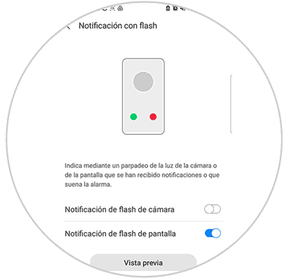 Verás varias opciones disponibles. En este caso debes activar "Notificación con flash".