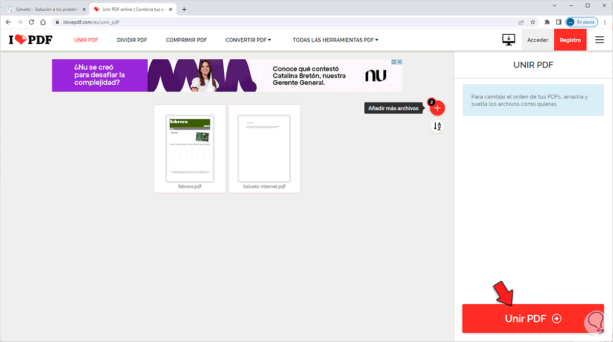 Damos clic en "Unir PDF" y el proceso se llevará a cabo: