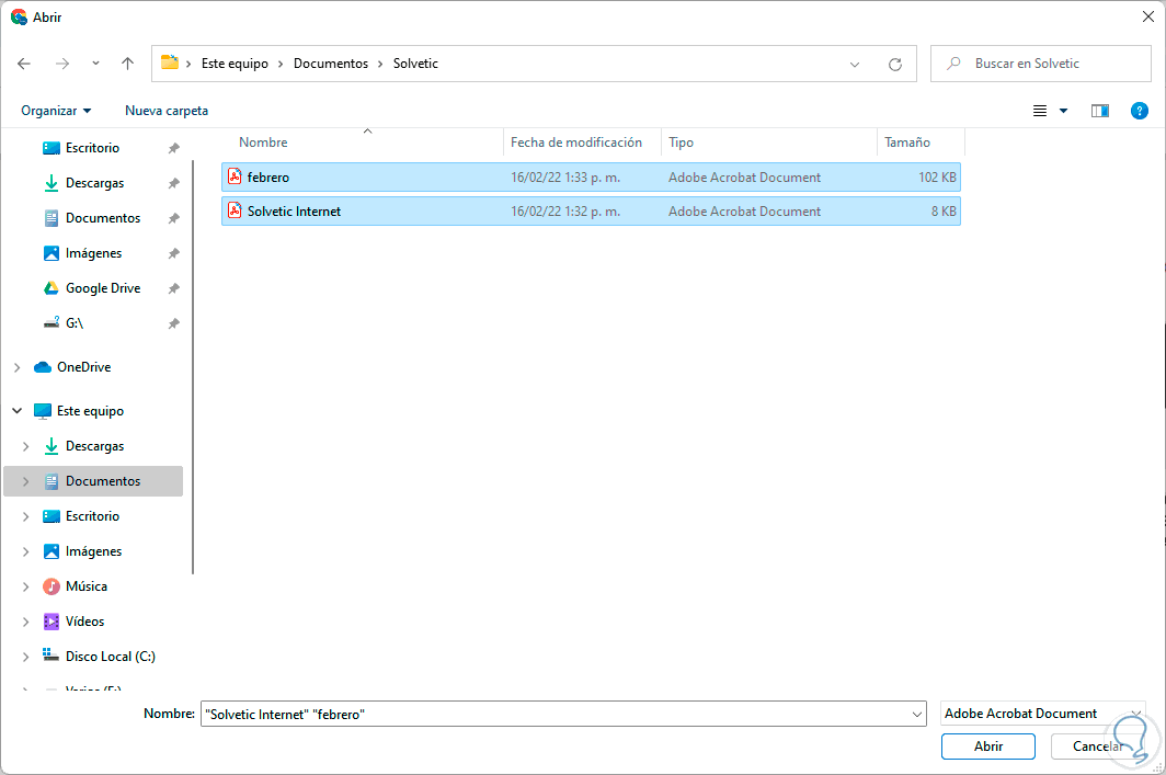Damos clic en "Seleccionar archivos PDF" y elegimos los archivos a unir.