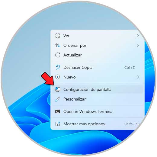 Validamos esto dando clic derecho en el escritorio y seleccionando "Configuración de pantalla":