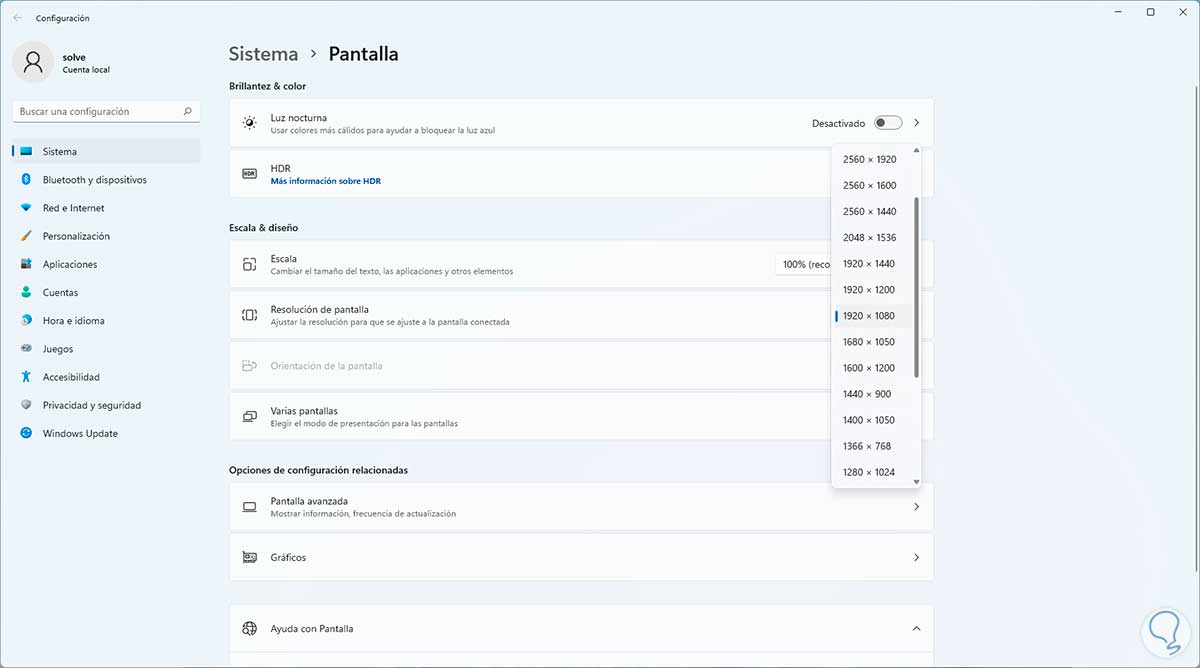 Allí seleccionamos una resolución diferente a la actual de la pantalla: