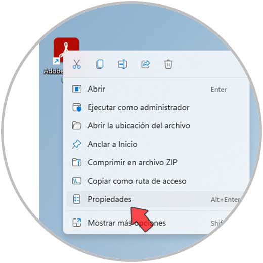 En primer lugar, damos clic derecho sobre el acceso directo y seleccionamos la opción "Propiedades":