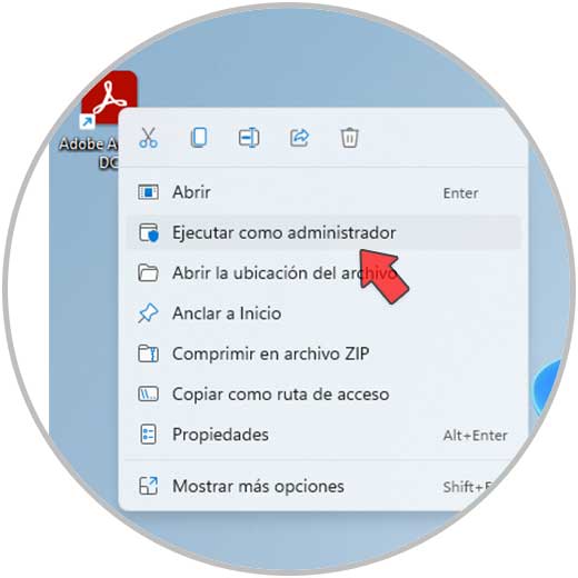 Damos clic derecho sobre el acceso directo y seleccionamos "Abrir como administrador":