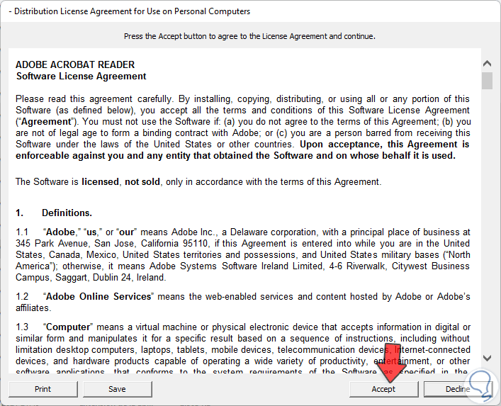 Damos clic en "Accept" y después de esto abrimos Adobe Reader: