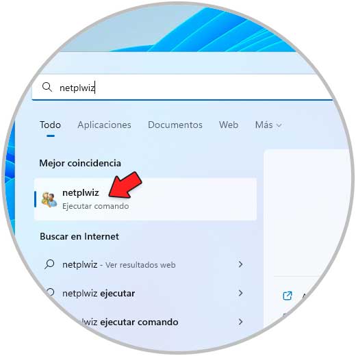 Desde el menú Inicio y usando un comando específico, es posible tener acceso al nombre de usuario de la sesión actual de Windows 11, en el menú Inicio ingresamos "netplwiz":