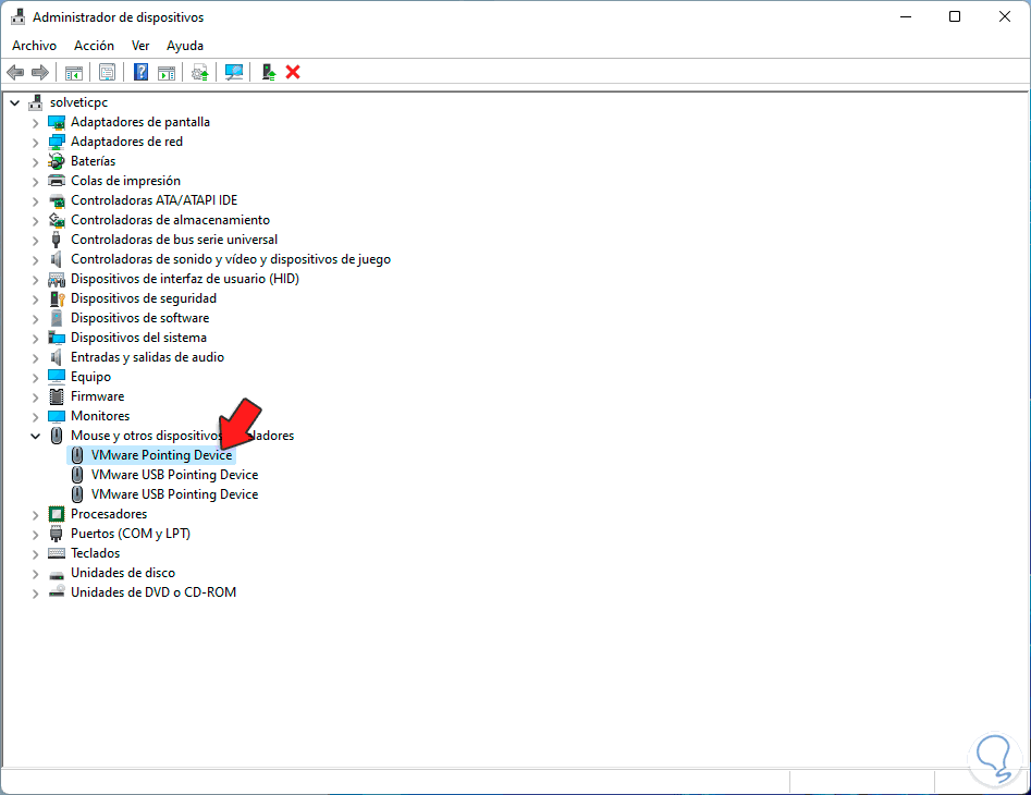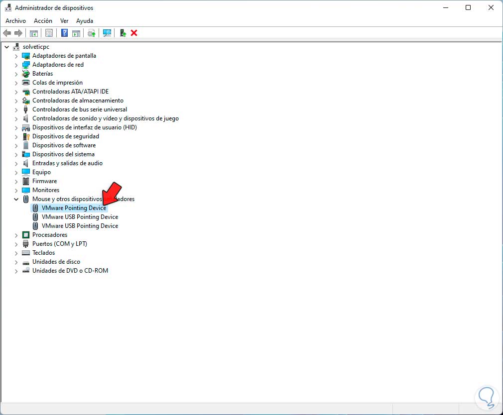 Vamos a "Mouse y otros dispositivos señaladores" y seleccionamos el controlador: