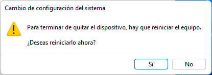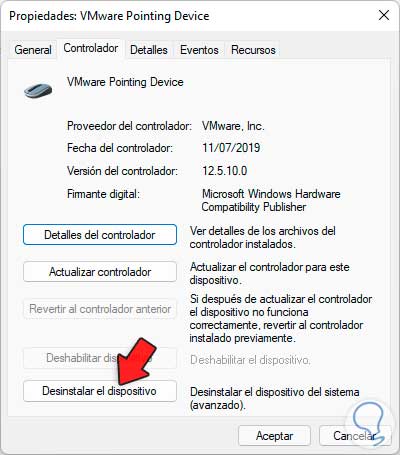 Pulsa Enter para abrir sus propiedades y en la pestaña "Controlador" damos clic en "Desinstalar el dispositivo":