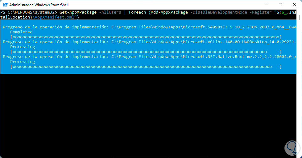 Con esto buscamos establecer las políticas de PowerShell en Sin restricciones, esto permite ejecutar algunas acciones sin que se vean limitadas, ahora ejecutamos: