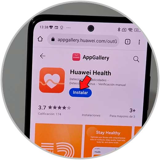 Vamos a "Instalar" la app de Huawei Health y elegimos "Continuar con descarga"
