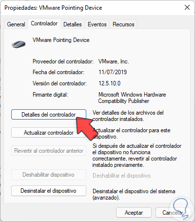 Pulsamos Enter para abrir sus propiedades y con la tecla Tabulador vamos a "Controlador":