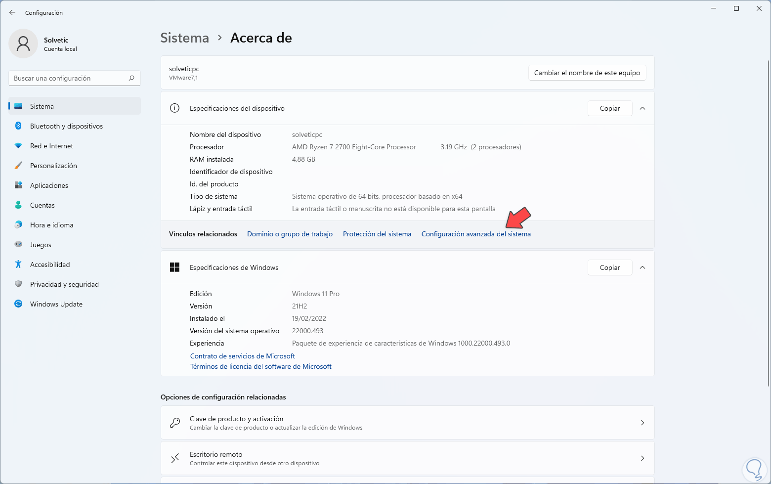Al acceder allí damos clic en "Configuración avanzada del sistema":