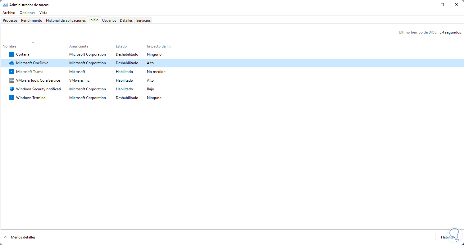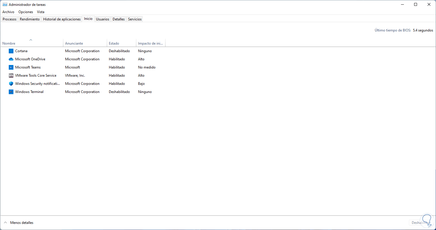 En la pestaña "Inicio" veremos los programas que se inician con Windows 11:
