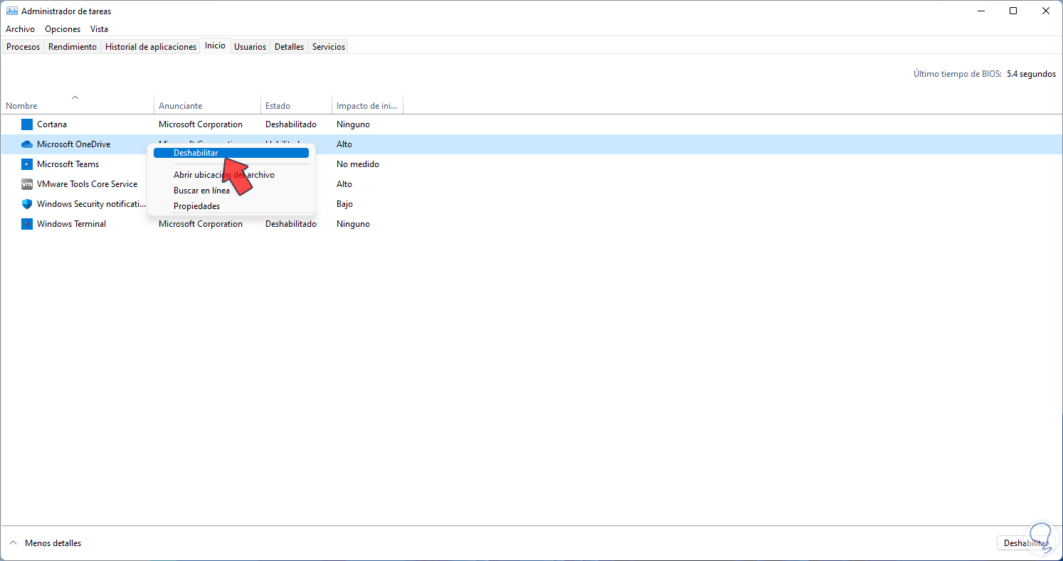 Damos clic derecho sobre la aplicación deseada y seleccionamos "Deshabilitar":