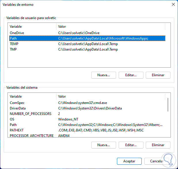 4. CMD No Funciona Windows 11 solución desde las Variables de entorno