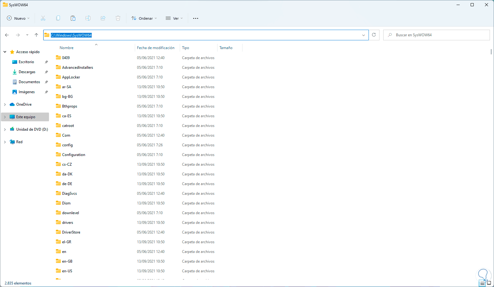 Abrimos el Explorador de archivos e iremos a la ruta "C:\Windows\SysWOW64", allí copiamos esa ruta: