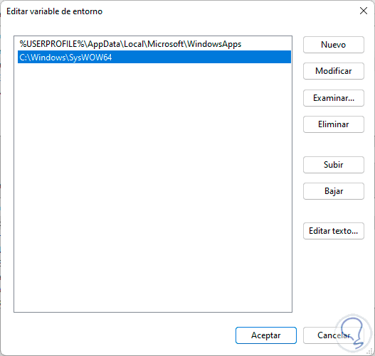 Damos clic en "Nuevo" e ingresamos la ruta de SysWOW64: