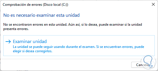 Damos clic en "Comprobar" para llevar a cabo un análisis de posibles errores en la unidad C, se abrirá lo siguiente: