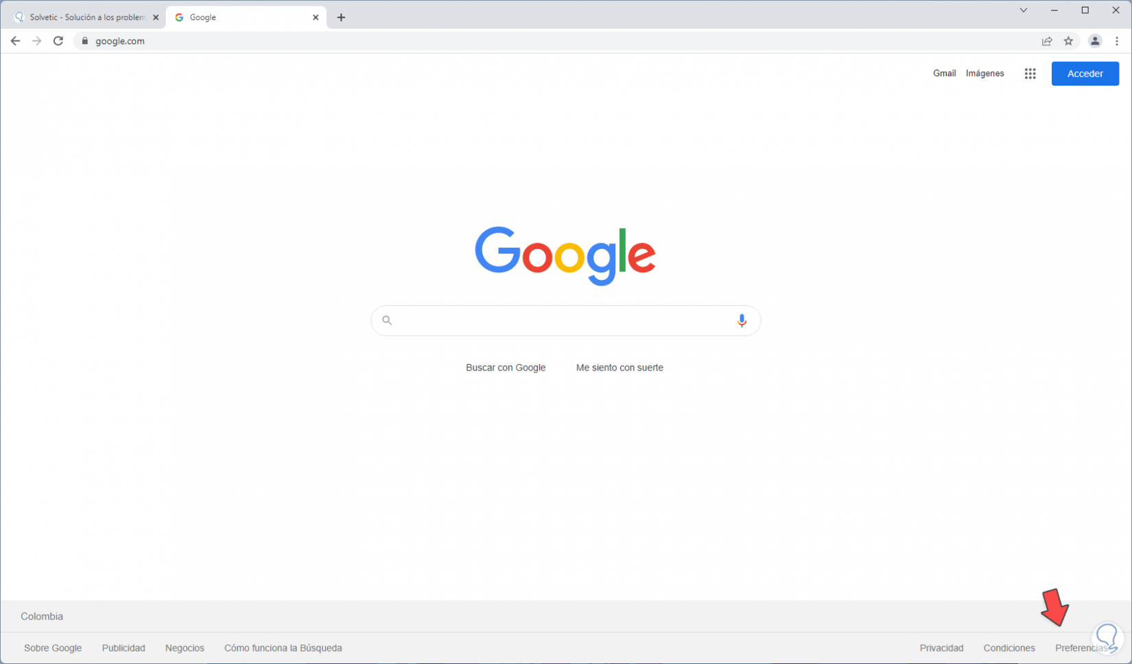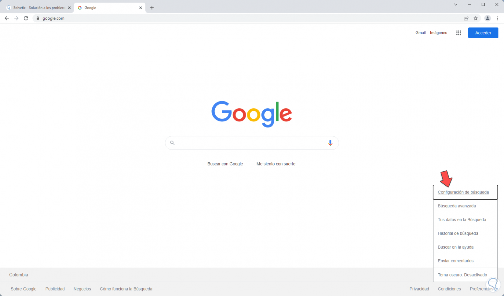 Pulsamos en "Preferencias" y luego seleccionamos la opción "Configuración de búsqueda":