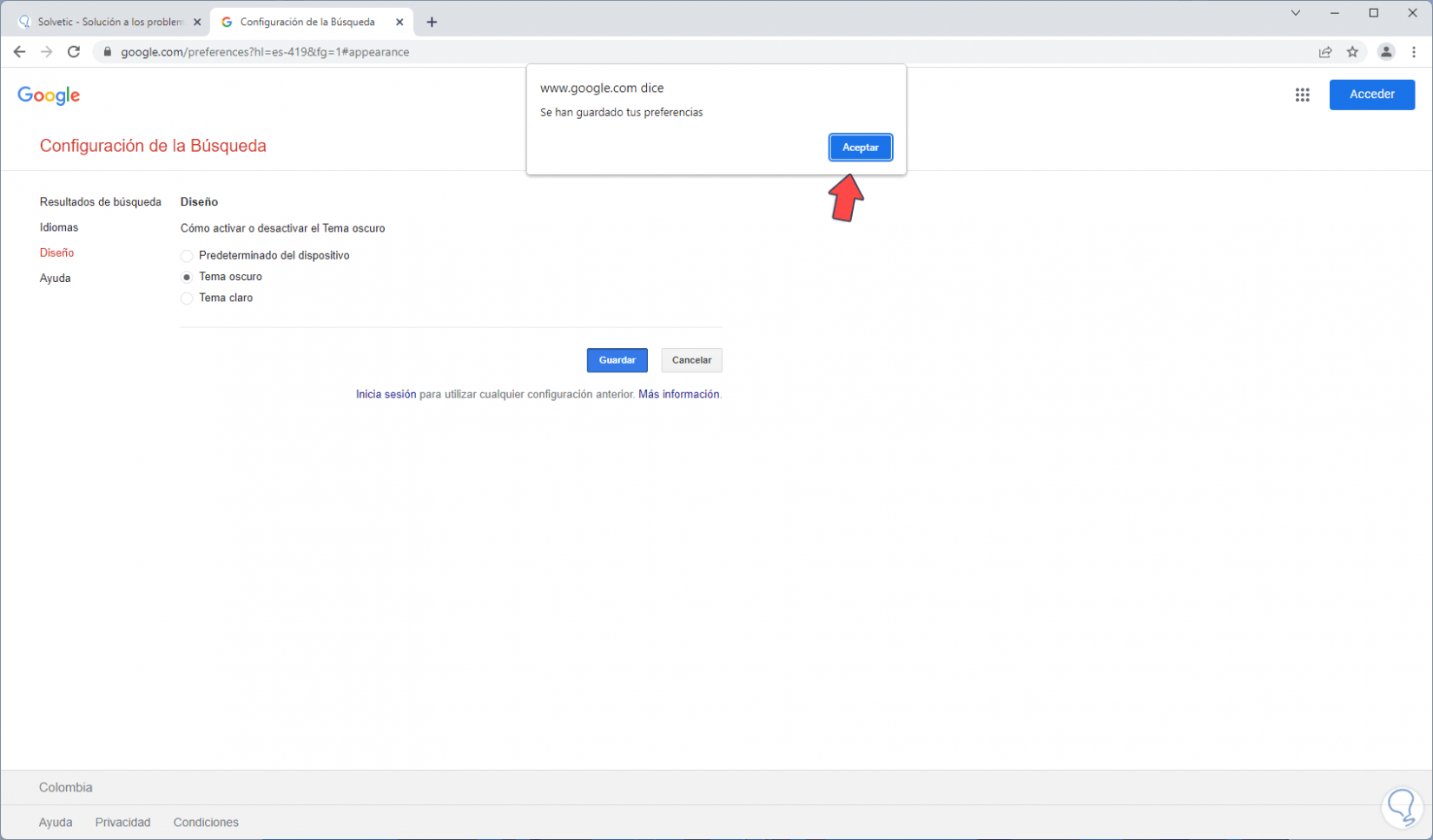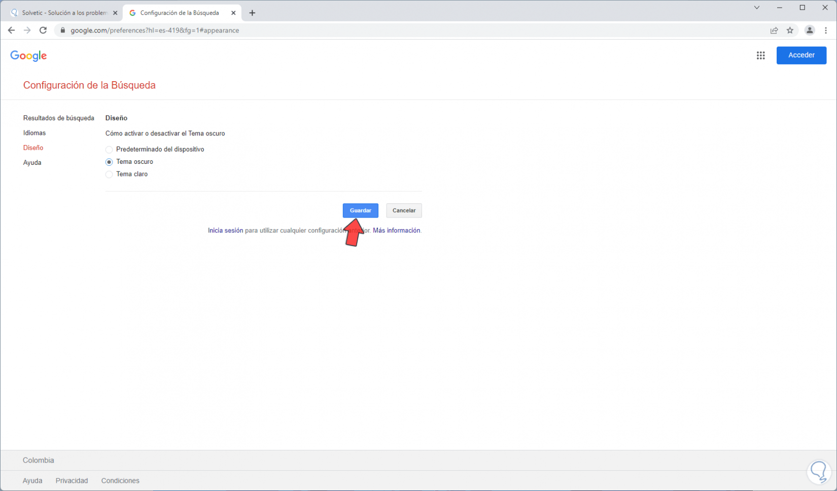 Con el Modo oscuro evitaremos que la luz de nuestra pantalla nos incida demasiado en la vista y acabe desencadenando con el paso del tiempo en posibles problemas de visión. Cunado usamos el móvil de noche o en lugares con bajas condiciones de visibilidad, El Modo oscuro buscador Google nos mejorará el uso del PC. En este tutorial Solvetic te enseñará de forma fácil cómo activar el modo oscuro en el buscador de Google.
