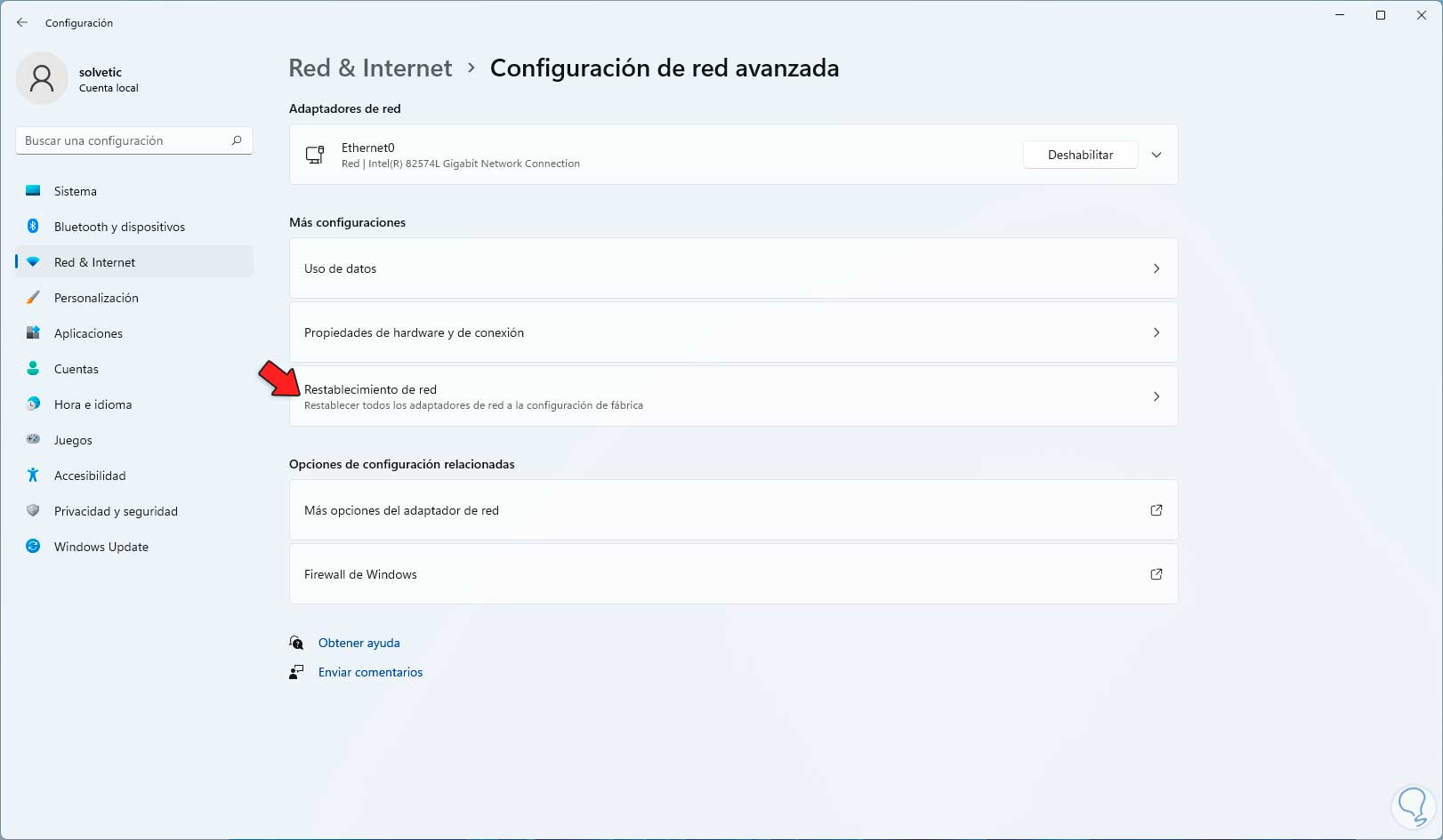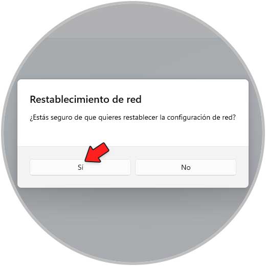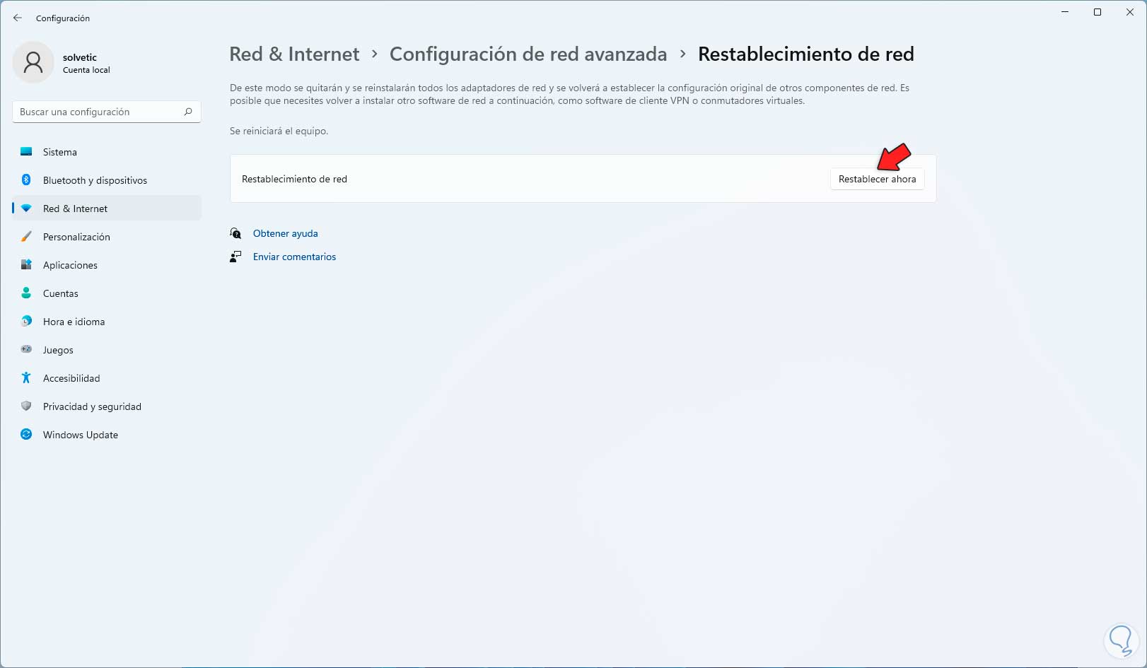 Damos clic en "Restablecimiento de red" y se abrirá lo siguiente: