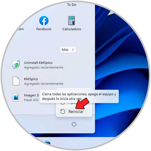 Después de esto reinicia Windows 11: