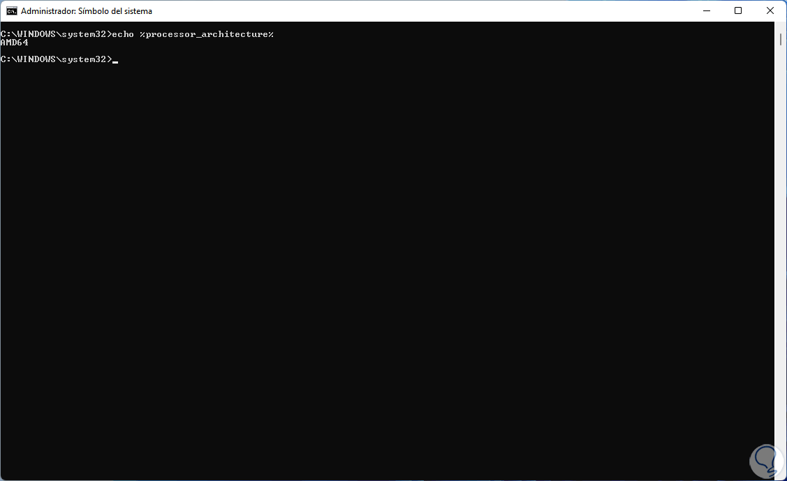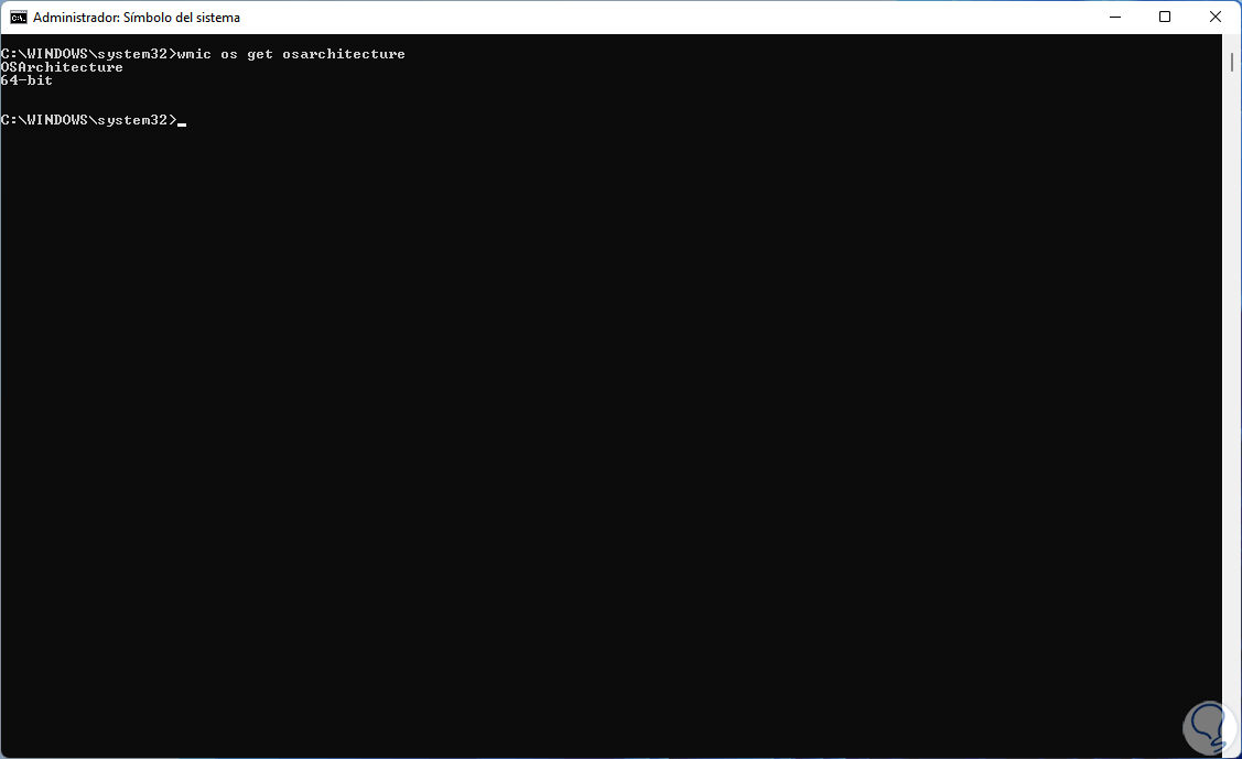 Finalmente disponemos de la consola del símbolo del sistema para conocer si nuestro sistema operativo es de 32 o 64 bits.