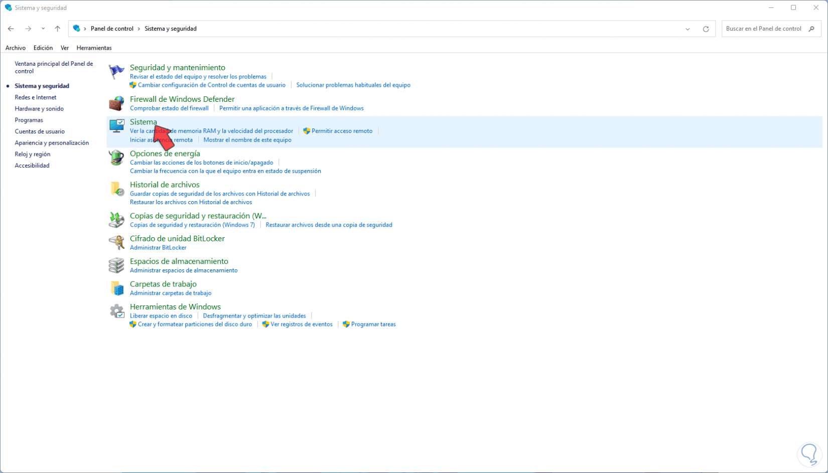 Damos clic en “Sistema y seguridad”: