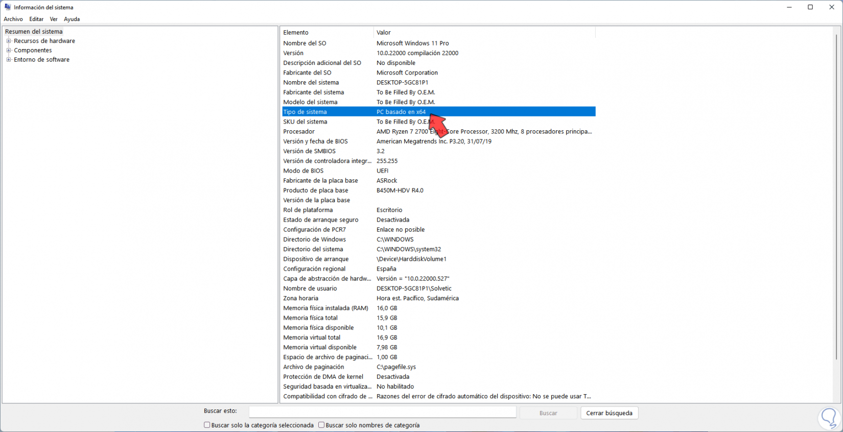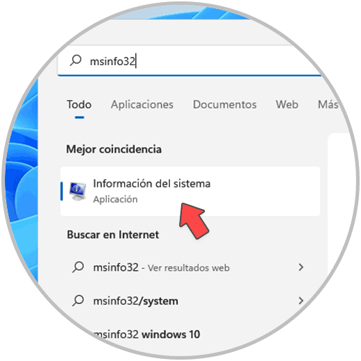 En el buscador ingresamos "msinfo32":