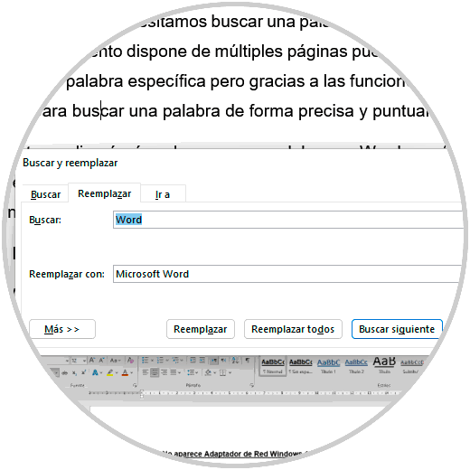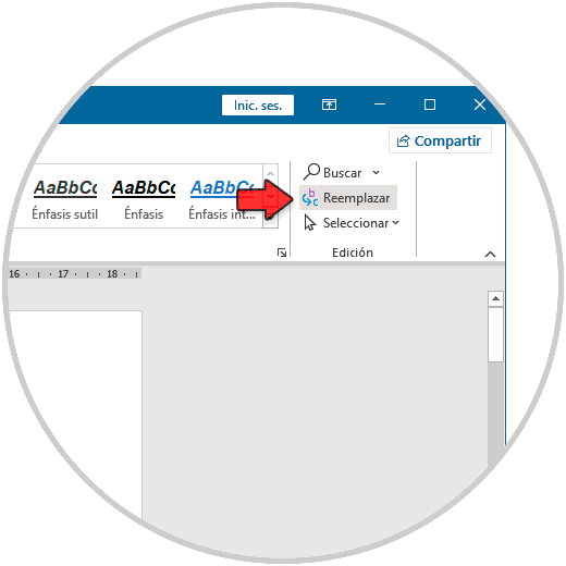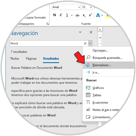 Damos clic en la flecha desplegable y seleccionamos "Reemplazar" para acceder a la misma función descrita: