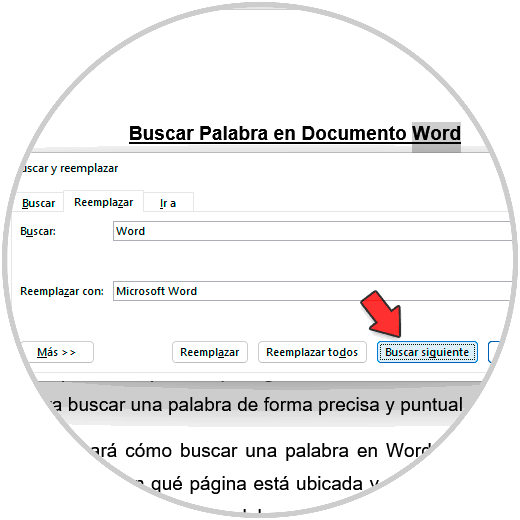 Damos clic en "Buscar siguiente" para detectar las palabras en el documento activo: