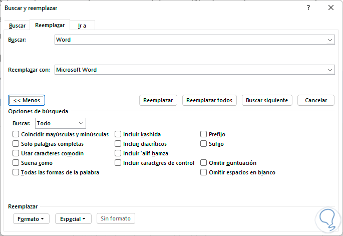 Con cada uno de estos parámetros es posible reemplazar la palabra de una forma mucho más precisa y no reemplazar alguna palabra de forma equivocada.