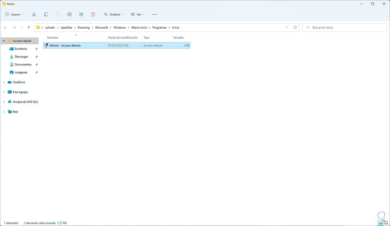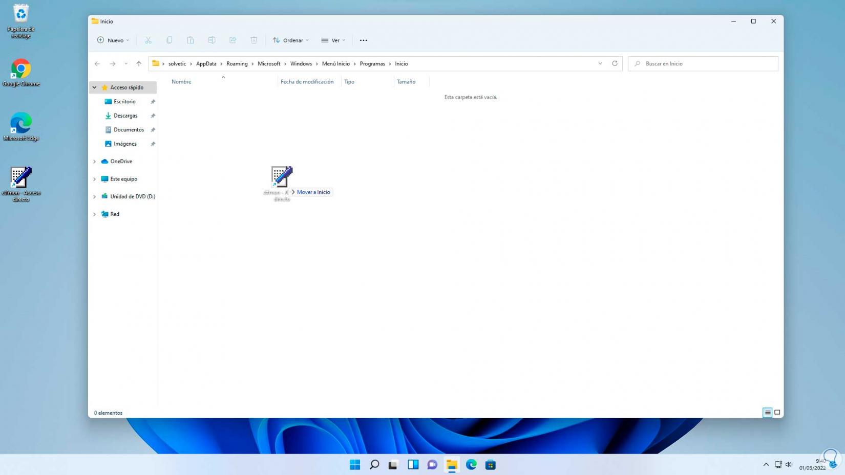 En esta carpeta se ubicarán los procesos y aplicaciones que se inician junto con Windows 11, arrastramos el acceso directo de CTFOM a esta carpeta:
