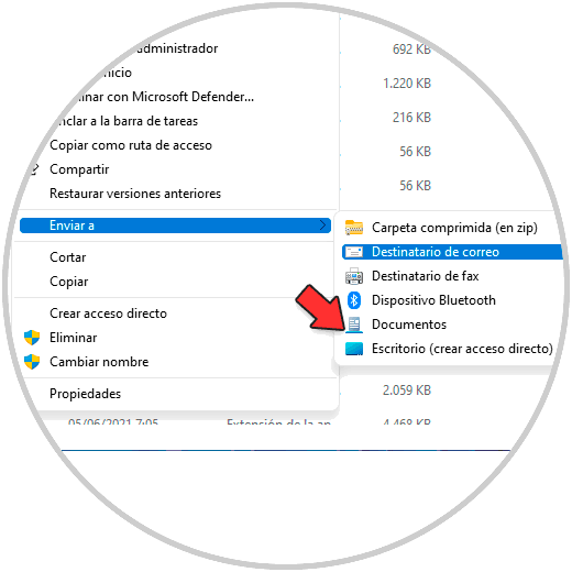 Luego vamos a “Enviar a - Escritorio (crear acceso directo)”: