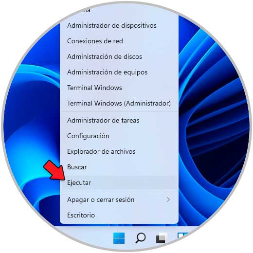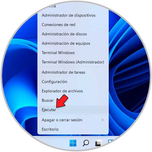 Abrimos Ejecutar desde el menú contextual de Inicio: