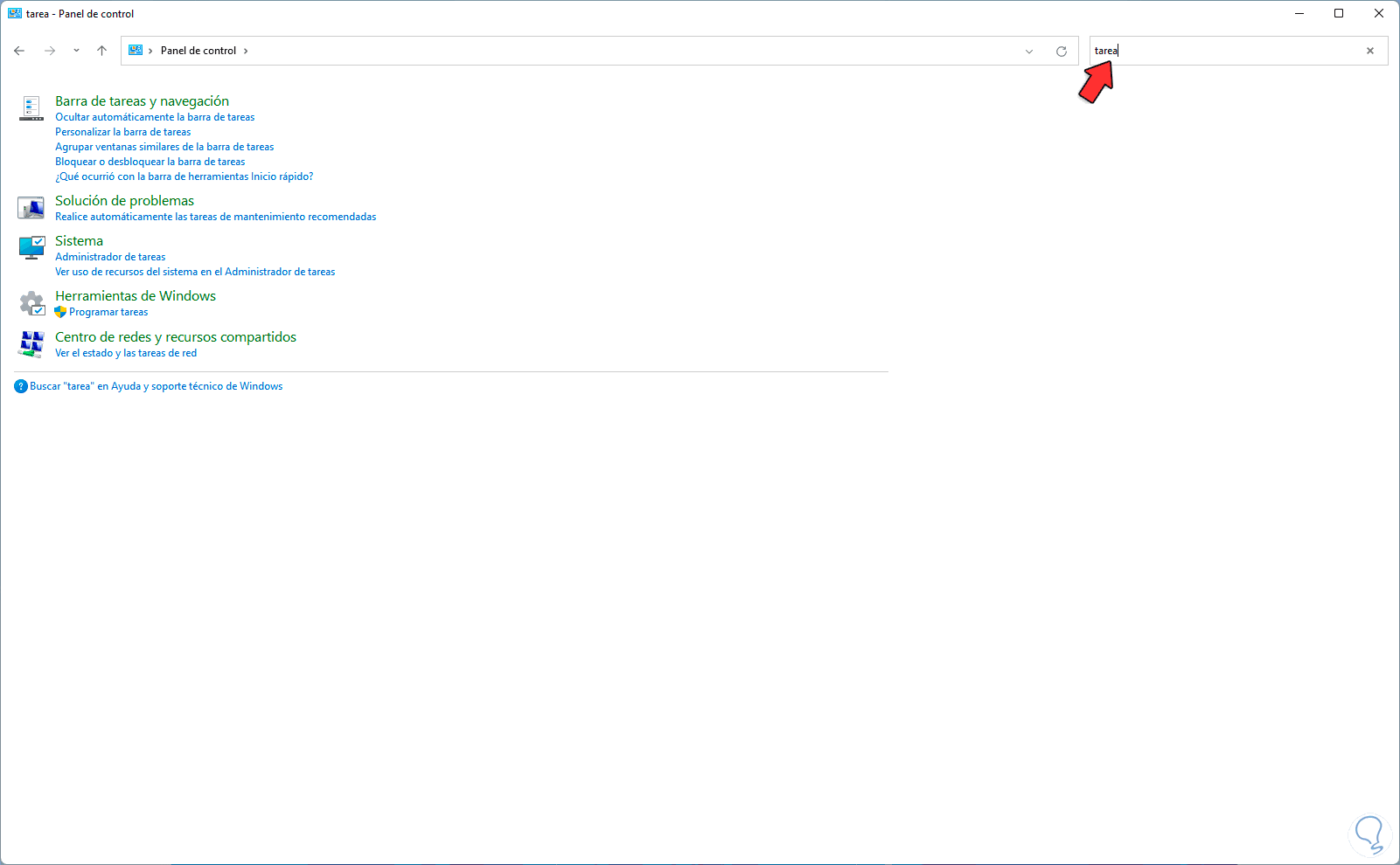 En el buscador ingresamos "tareas" y seleccionamos el Administrador de tareas: