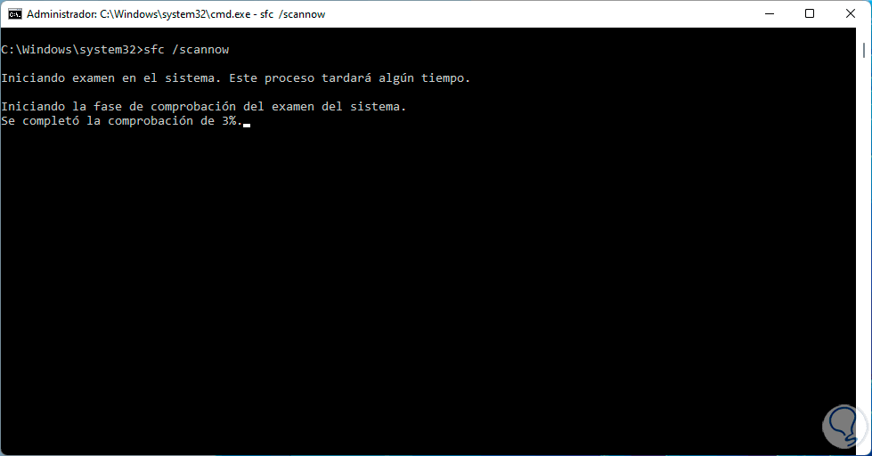 Con el comando SFC (System File Checker) se han usado otros parámetros para analizar y para verificar el archivo, este archivo se encarga de algunas gestiones del sistema operativo Windows 11, ahora ejecutamos: