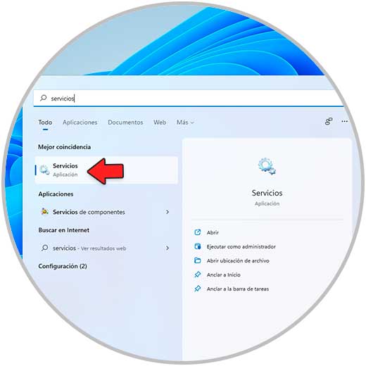 Para este método usaremos la consola de los servicios la cual es la más usada para este tipo de operaciones, abrimos Servicios desde Inicio:
