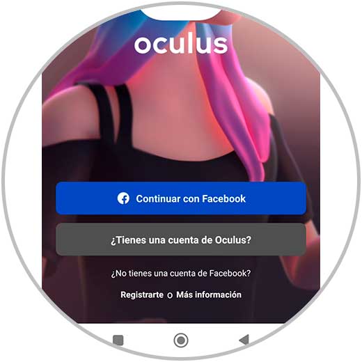 Abrimos la app e iniciamos sesión con nuestra cuenta de Facebook o bien nos registramos en Oculus