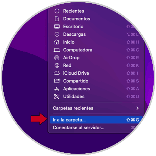 Podemos ir a Descargas desde la raíz, para ello vamos a "Ir - Ir a la carpeta":