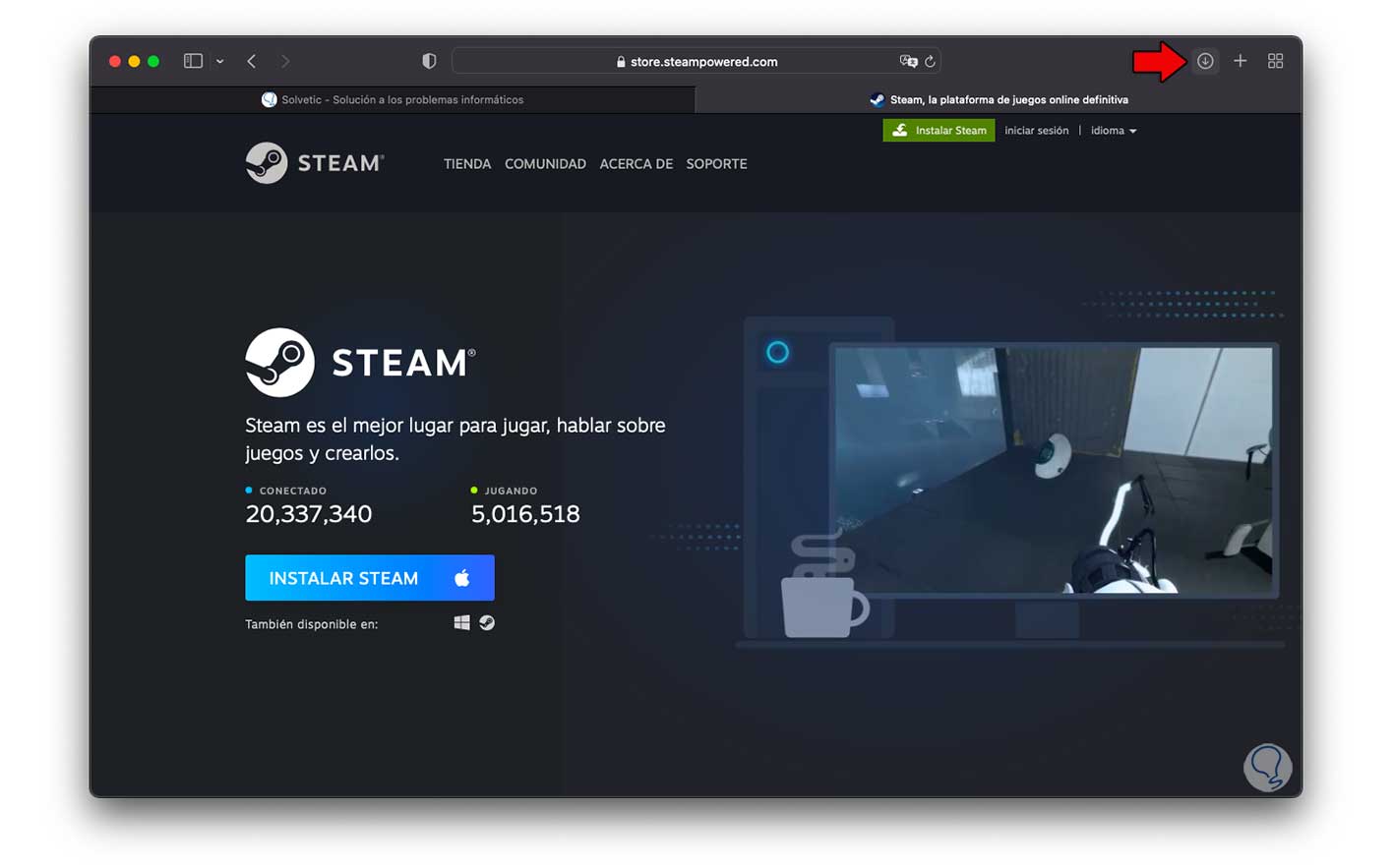 En Safari da clic sobre el icono de descarga ubicado en la parte superior: