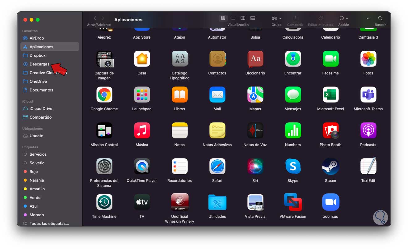 Alternativamente podemos abrir el Finder. Allí vamos a "Descargas":
